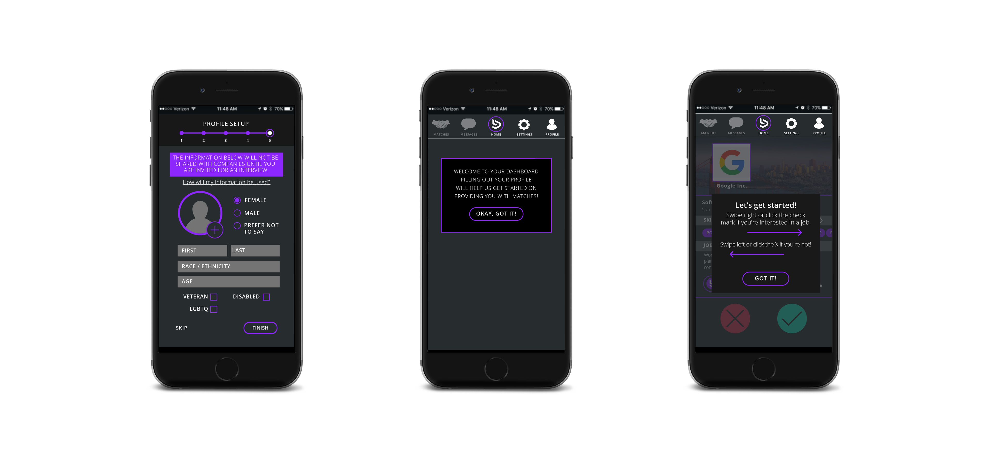 Blendoor already had a rough prototype that they were using to conduct early beta tests. We took the prototype directly to users who were similar to our primary persona and went through it with them screen by screen. By doing this we were able to find numerous pain points and areas for improvement. Below are some of the problems we found and the ways that we solved them.